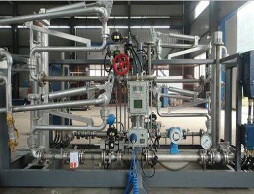 油品定量裝車橇裝組是指將每一個裝車鶴位內的儀表和設備集成在一個專用的框架結構內,儀表和設備包括裝車鶴管、流量計、防溢油靜電報警控制器、壓力變送器、裝車流量控制閥、緊急切斷閥,裝車泵、批量控制器等, 只預留工藝連接口和控制電源和通訊接口,這個整體集成部分稱為裝車橇。與傳統(tǒng)的裝車控制系統(tǒng)就地組裝比較,裝車橇可以節(jié)省現場設計和現場施工量,縮短項目工期,提高裝車控制系統(tǒng)的質量。